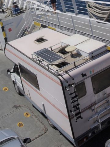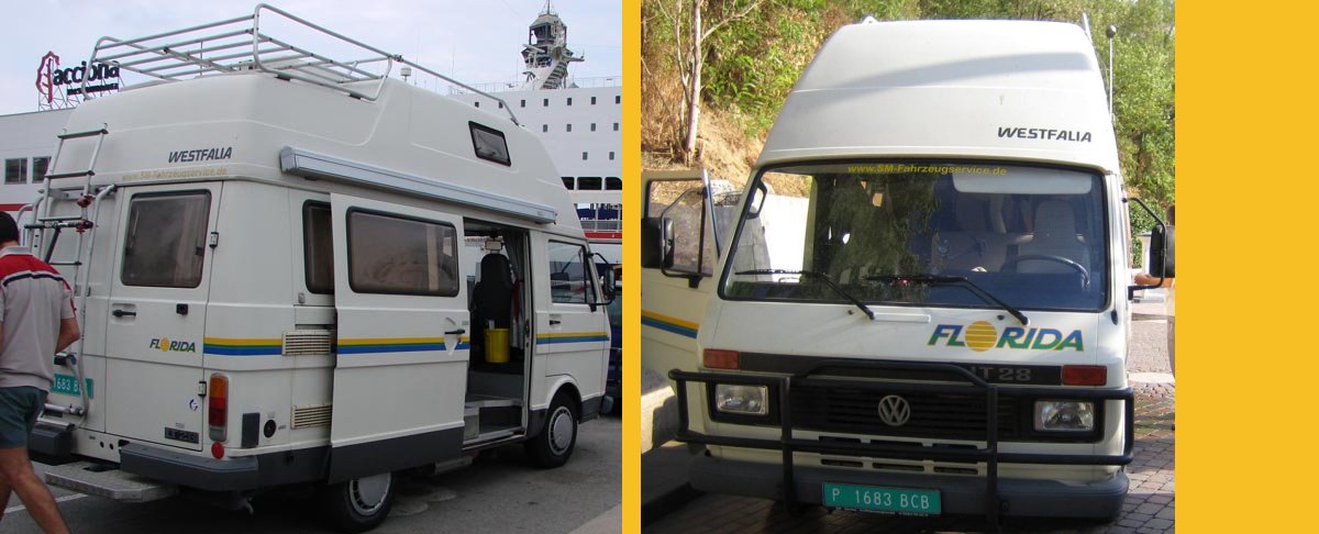 di compagnie di navigazione greche sul portellone posteriore. Aveva montato il portabiciclette. Interni blu carta da zucchero, con tendine azzurre. |