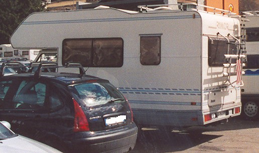| GB387GE | Possl Summit 600 Plus | Piazza Eschilo, Axa, Roma | Nella notte tra il 5 ed il 6 dicembre 2020 | Rubato nella notte camper van di 6 metri, color bianco, appena comprato, contraddistinto dal fatto di avere le finestre laterali posteriori su entrambi i lati, normalmente non presente sul lato sinistro come da foto.