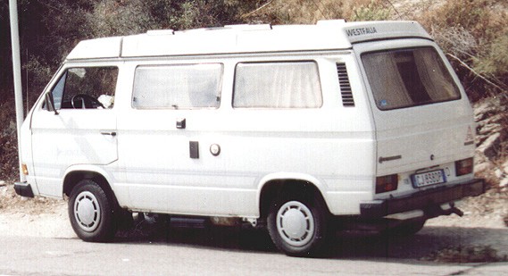 E' bianca, con righe gialle e grigie, perfetta; condizionatore Blizzard sul tetto, boiler acqua calda, stufa con canalizzazione, stabilizzatore corrente 12 V e stabilizzatore di marcia Westfalia. Sarei felice di ringraziare e di mettere a disposizione di chiunque possa darmi valide informazioni per ritrovarla in breve tempo £. 2.000.000 |