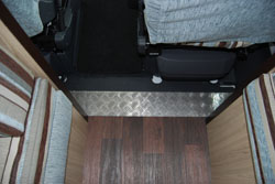 Prima di abbandonare la cabina di guida, controlliamo la fruibilità del passaggio cabina abitacolo, specie negli allestimenti con dinette tradizionale e, quindi, panca contromarcia piuttosto pronunciata, mentre se ci troviamo su un veicolo con living anteriore integrato controlliamo la comodità dello stesso. Prendiamo tutto il tempo necessario a valutare il dimensionamento del tavolo, la sua capacità di traslare al fine di raggiungere adeguatamente tutti i posti previsti, e il suo ampliamento. Ve ne sono di diversi tipi: a libro o a scorrimento, l’importante è che risultino stabili e sufficientemente grandi. Dal momento che ci troviamo su un veicolo familiare e votato alla comodità piuttosto che alla compattezza e alla dinamicità, controlliamo il dislivello cabina abitacolo: è questo, infatti, che può incidere pesantemente sulla comodità dei posti in cabina in sosta. In particolare, se ci troviamo su un veicolo con telaio ribassato , facilmente la cabina di guida si troverà diversi centimetri più in alto rispetto all’abitacolo, con la conseguenza che le poltrone, una volta girate, rischiano di offrire una seduta troppo alta rispetto al piano del tavolo. Viceversa, se ci troviamo su un mansardato con doppio pavimento o allestito su una meccanica con trazione posteriore, il rischio è quello che l’abitacolo si trovi più in alto rispetto alla cabina. Controlliamo, quindi, che l’allestitore abbia provveduto a fornire le necessarie soluzioni al fine di neutralizzare il dislivello rialzando le sedute anteriori. La soluzione più semplice, ma non sempre comoda ed efficace, consiste nella dotazione di due semplici materassini; ben più elaborato ma efficace è il sistema di sollevamento pneumatico dei sedili anteriori.