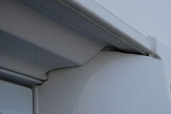 Controlliamo con grande cura la giuntura inferiore tra pareti, sottomansarda, cantonali anteriori e profilo frontale: siamo sovente in presenza di superfici poco lineari, con diversi elementi curvati, bombati o con forme elaborate che devono andare a collimare in un gioco di incastri assolutamente preciso. Questa zona, in particolare, è la più delicata di tutto il veicolo: è quella, infatti, che deve gestire l’impatto dell’aria durante il viaggio. Più la velocità è elevata, più il profilo anteriore è imponente e più il veicolo offrirà resistenza all’aria. Tutto ciò ha inevitabili conseguenze sui consumi di carburante, per forza di cose più elevati rispetto a un profilato o a un integrale di pari dimensioni, sulle performance stradali, con una minore velocità di punta, e sulla stabilità in marcia, più soggetta a schiaffi laterali e sensibilità al vento a causa dell’altezza e della forma anche se ultimamente l’adozione di telai con carreggiata posteriore allargata ha parzialmente sopperito a questa problematica. Sempre all’esterno controlliamo il numero e la tipologia di finestre, la presenza di un oblò centrale, magari corredato da un utile paravento per proteggerlo dalle turbolenze in viaggio, e la qualità dei cantonali: non è difficile, infatti, che quelli superiori siano divisi in più parti con giunture non sempre adeguatamente rifinite e protette. Osserviamo con cura, poi, il livello delle sigillature: il sigillante, infatti è solitamente applicato una volta montata la parete prima di applicare tra essa e il tetto il cantonale di copertura.