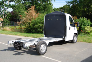 L’assemblaggio della scocca avviene a partire da un autotelaio cabinato. Si tratta, quindi, di una meccanica di base che conserva la cabina in lamiera d’acciaio e tutte le relative caratteristiche di solidità, robustezza e praticità. Troviamo, quindi, scocca ad assorbimento d’urto con parti deformabili, barre antintrusione, accessibilità del motore e dei posti nell’abitacolo originale. Tutto ciò, che ha evidenti implicazioni in termini di sicurezza passiva, reperibilità e prezzo dei ricambi e semplicità di allestimento, a tutto vantaggio dell’utilizzatore e dell’allestitore. Per contro, la cabina originale, essendo in lamiera di acciaio, non è coibentata, quindi in caso di utilizzo del veicolo durante la stagione fredda è bene provvedere a verificare che il riscaldamento in questa zona sia particolarmente efficace e, magari, apporre sulla stessa una copertura coibentante a più strati in modo da ridurre dispersioni di calore e condensa.