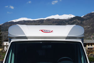 Attenzione, quindi, quando si valuta l’acquisto di un semintegrale, a verificare con cura e scrupolo questa delicata zona. Osserviamo, preliminarmente, il veicolo dall’esterno, avendo cura di verificare la qualità e la precisione degli accoppiamenti tra cabina, cellula e raccordi e le sigillature tra gli stessi. Inutile dirlo, non vi devono essere smagliature o rigonfiamenti nei tratti sigillati, segno di un ipotetico “lavoro” da parte degli elementi e quindi di torsioni in atto, sia ben più pericolose crepe, possibili data la natura dei rivestimenti (specie se in abs) e non sempre riparabili correttamente se non con la sostituzione del pezzo interessato dal difetto. Poiché le pareti laterali che allargano la scocca rispetto alla cabina sono generalmente in legno e sono fissate tramite angolari alla carrozzeria in lamiera di acciaio, è bene controllare che il successivo carter in abs o vtr che ne ingentilisce le forme sia stato adeguatamente sigillato anche nelle esposte parti basse laterali. Da controllare, anche, la possibile presenta di una presa d’aria di sicurezza che può essere piazzata proprio in quella zona. Il cupolino, invece, si può controllare bene sia dall’interno che dall’esterno. Saliti a bordo del veicolo, osserviamo come il raccordo tra tetto e cabina sia stato ricoperto all’interno.