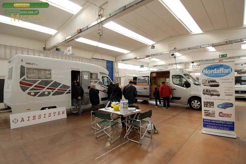 Lo specialista del camper puro Nuova Nord Affari propone furgonati Globecar Campscout e Roadscout, Pössl 2 Win, Volkswagen California e Aiesistem Projet Van. Dello stesso allestitore veneto si mette in bella mostra anche un semintegrale Projet 505 con monoscocca in vetroresina.