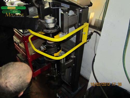 Ci siamo pertanto recati presso l’Auto-Caravan Massaua di Torino che ha effettuato, allo scopo, un intervento di sostituzione delle molle originali con un apposito kit della Goldschmitt e nella sequenza fotografica che segue sono illustrate le operazioni che si rendono necessarie.
