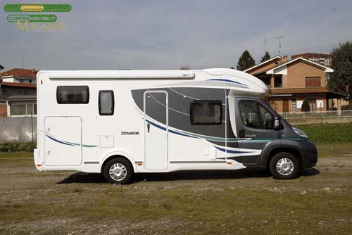 Il Flash 26 Titanium di casa Chausson è un semintegrale con letto matrimoniale a discesa sul living prodotto in edizione limitata dal costruttore francese e offerto in promozione per la primavera 2012. Sono tre in totale i veicoli che compongono la serie Titanium e tra le caratteristiche salienti rientrano sicuramente il look esterno assolutamente accattivante che si accompagna ad una ambientazione interna moderna e curata. Il merito va attribuito alla bella colorazione grigio antracite dell’intera cabina di guida e alla grafica della stessa tinta, ma anche ai nuovi mobili, alle inedite tappezzerie e all’allestimento decisamente curato che comprende dotazioni più che complete.