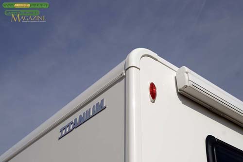 Il tetto è anch’esso realizzato a pannelli sandwich con rivestimento esterno in vetroresina e presenta uno spessore di 54.5 mm. Nella parte anteriore presenta la bombatura classica destinata a contenere il letto basculante e l’unione con le pareti è mascherata da appositi cantonali di copertura. Lungo la giunzione con la parete posteriore è presente una modanatura con profilo copriviti.