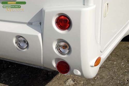 | Accessori di serie | Colorazione grigio antracite, climatizzatore, doppio airbag, ABS, regolatore di velocità, doppio portellone garage, carreggiata posteriore allargata, autoradio con Cd e comandi al volante, cruscotto Techno, oblò panoramico, Sunroof, frigorifero 190+35 Lt, supporto Tv, fodere sedili cabina griffate, Pack cabina elettrico (chiusura centralizzata, alzacristalli elettrici, retrovisori con sbrinatore) |