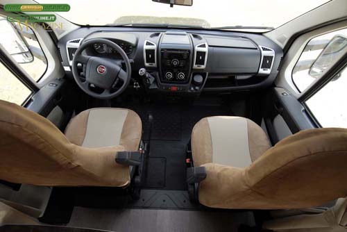 I sedili sono rivestiti con fodere coordinate con le tappezzerie della cellula e dispongono di braccioli, piastre girevoli e delle regolazioni in altezza e inclinazione delle sedute. Le dotazioni di serie sono complete e comprendono ABS, doppio airbag, climatizzatore, regolatore di velocità, chiusura centralizzata, alzacristalli elettrici, retrovisori con sbrinatore, autoradio con CD e comandi al volante, cruscotto Techno con inserti in alluminio.