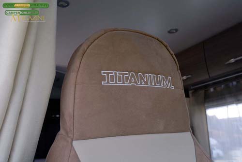 Pur nella loro semplicità si rivelano eleganti, con le numerose curvature presenti che denotano una certa cura costruttiva. Tra gli elementi di spicco dell’edizione limitata Titanium figurano anche, oltre al nuovo rivestimento del pavimento, i nuovi laminati antigraffio dei piani di tavolo e cucina, che presentano uno spessore di 27 mm.