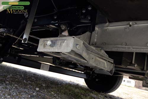 Nella parte posteriore del telaio è presente la struttura in acciaio zincato, imbullonata ai longheroni del Ducato, che funge da sostegno per il garage posteriore.