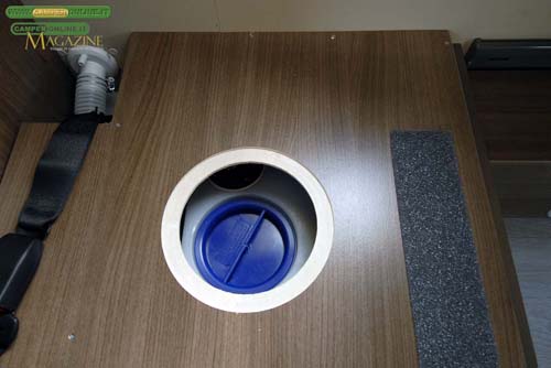 La cassetta estraibile da 17,5 litri del wc, un Thetford C 250, è alloggiata nell’apposito vano situato sulla fiancata destra.