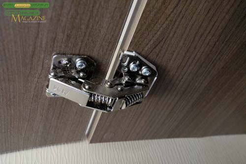 Il quinto posto omologato è un indubbio valore aggiunto, ma risulta un po’ svantaggiata la sua posizione contromarcia. Rimanendo nella zona del living, la sua trasformazione in letto risulta un po’ laboriosa, sopratutto a causa del tavolo molto pesante e quindi poco maneggevole, inoltre lo spazio in altezza, quando il basculante è posizione abbassata, risulta un po’ compromesso a causa dei pensili. La movimentazione del basculante risulta precisa, peccato, però, che si renda necessaria la rimozione dei poggiatesta della semidinette. Il coperchio della cassapanca del sedile contromarcia, a causa delle fresature per la battuta, presenta ai bordi uno spessore alquanto limitato, rendendolo piuttosto delicato. Un ultimo appunto, infine, riguarda l’accesso alla batteria dei servizi alloggiata nel garage. Quest’ultima è nascosta alla vista da un coperchio che riporta il consueto foro per favorire la sua rimozione: la batteria sottostante è però troppo vicina al coperchio e risulta difficile introdurre il dito o qualunque altro oggetto necessario al sollevamento. E’ sicuramente un problema di poco conto, che può comunque risultare fastidioso.