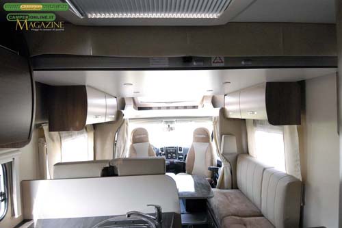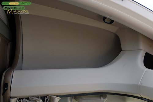 Nel cupolino anteriore che sovrasta la cabina di guida sono inoltre ricavati tre pratici vani, uno centrale da 145×36 cm e due laterali simmetrici da 63×28 cm.