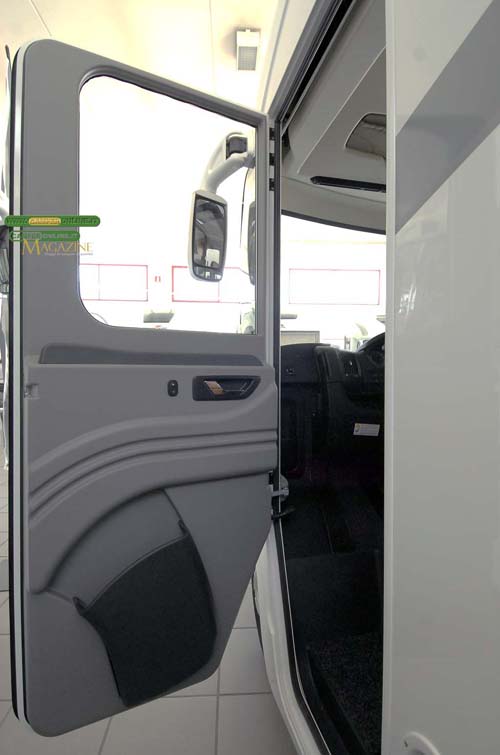 Assolutamente da rimarcare la coda, realizzata in un unico pezzo e caratterizzata da numerose nervature non solo di carattere estetico. La parte centrale in bassorilievo consente di alloggiare la scaletta nella sagoma limite del veicolo e anche la riuscita fanaleria a sviluppo verticale e di forma leggermente angolare è montata a filo della carrozzeria. E’ un altro elemento di pregio che va sommarsi ai due scalini inferiori ricavati direttamente a stampo.