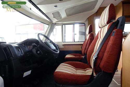 L’integrazione tra cabina di guida e cellula abitativa è curata e vede la presenza di un sovra cruscotto in abs morbido abbastanza preciso nell’accompagnare le forme del cruscotto originale Fiat.