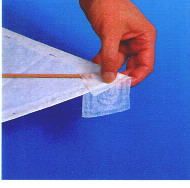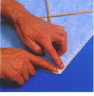 Per finire si rinforzano le punte incollandovi dei pezzetti di carta lucida, facendo partire da ciascun angolo un pezzo di filo da pesca o di seta.