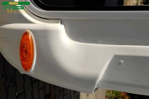 L’accesso è agevolato da un gradino integrato in ABS che misura 46×22 cm e si trova a 34 cm dal suolo, risultando ben intervallato rispetto al dislivello di 57 cm del pavimento. Nella parte bassa sono presenti le feritoie per l’aerazione e a livello del pavimento, nella cassapanca del divanetto laterale, si trova invece una bocchetta del riscaldamento. Una maniglia in metallo cromato sul lato sinistro facilita la salita a bordo.
