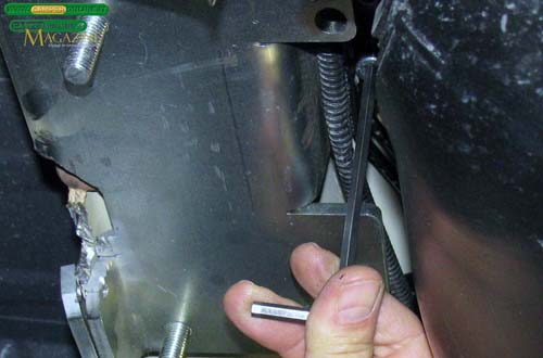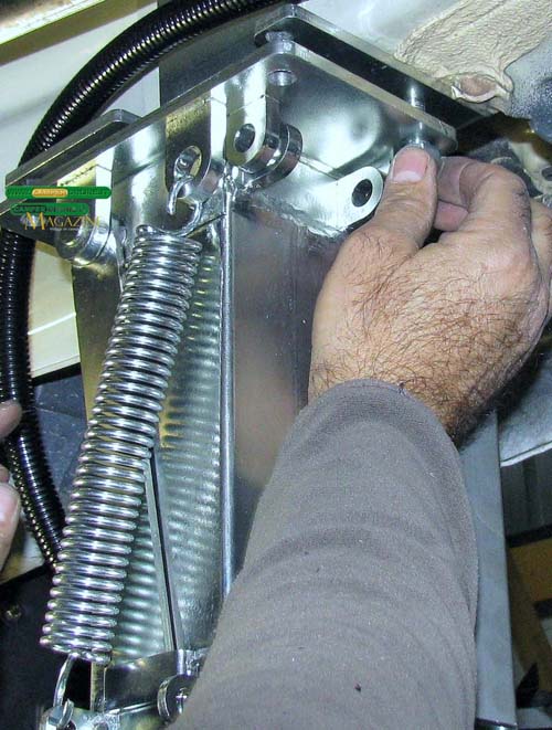 Nell’immagine successiva il tecnico sta provvedendo al serraggio dei bulloni con testa a brugola. Si può notare il piedino in posizione di montaggio dopo che è stata verificata l’assenza di possibili interferenze.
