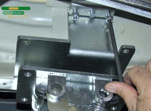 Si procede analogamente con l’installazione delle staffe per i piedini anteriori. Anche in questo caso è importante verificare attentamente la posizione, in modo da accertarsi che non esistano ostacoli che possano impedire la corretta movimentazione durante il funzionamento.