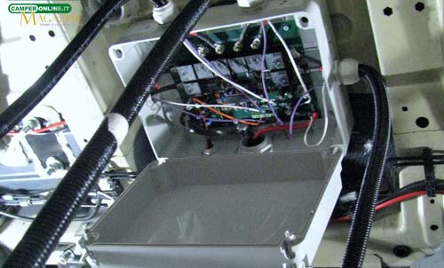 Presso l’Auto-Caravan Massaua di Torino abbiamo assistito all’installazione dei martinetti elettrici AutoLift System della Tesa di Montesilvano (PE) e nella sequenza fotografica che segue sono illustrate le diverse fasi dell’intervento. Il kit è composto da quattro piedini con relative staffe di montaggio, centralina precablata, pannello di controllo e radiocomando, e una volta installato consente di livellare il veicolo in maniera totalmente automatica o manuale.