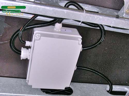 La centralina di controllo viene fornita completa di guaine flessibili e cavi elettrici già cablati. Nella foto che segue si può vedere la centralina installata sotto al pianale del veicolo. Per un corretto funzionamento dei suoi sensori è importante che risulti perfettamente allineata con l’asse longitudinale del veicolo.