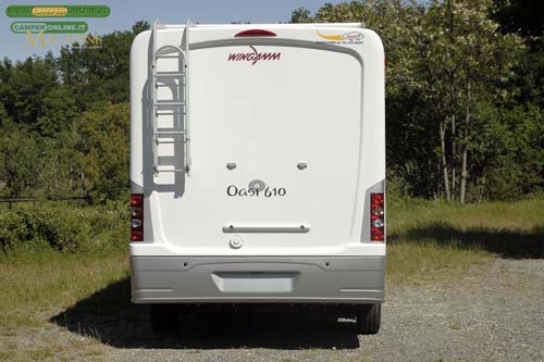 Il Wingamm Oasi 610 M è allestito sulla base meccanica del Fiat Ducato 35 L con carreggiata posteriore allargata a 198 cm e anteriore da 181 cm.