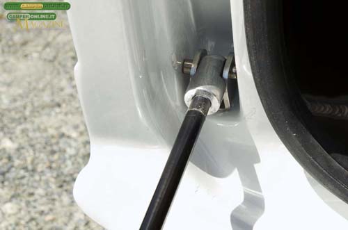 Ogni componente della cellula, non solo la monoscocca, è realizzato in vetroresina, a cominciare dal paraurti posteriore e dalle bandelle laterali, spesso fonte di rumore in marcia e in qualche caso di possibili vie d’entrata all’acqua a causa delle viti di fissaggio. I veri punti di forza sono però rappresentati dalla porta e dagli sportelli, anche questi realizzati in vetroresina e privi di cornici perimetrali: come nella migliore tradizione nautica, infatti, le battute sono ricavate direttamente a stampo e un ulteriore valore aggiunto è dato dalle robuste cerniere a scomparsa T.HI.R.D. (Total Hidden Rotation Device) che esamineremo in seguito.