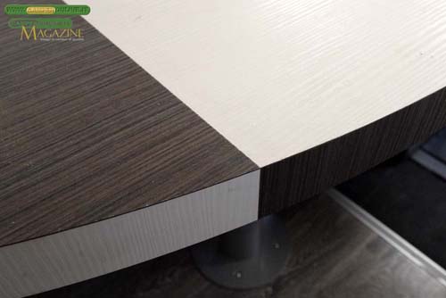 Si mette in evidenza per l’elevato spessore (30 mm) e presenta una impeccabile lavorazione con l’abbinamento dei due laminati impiegati dal mobilio.