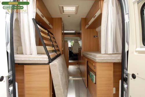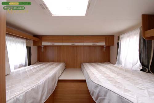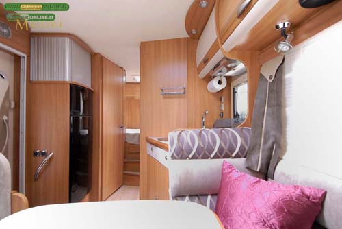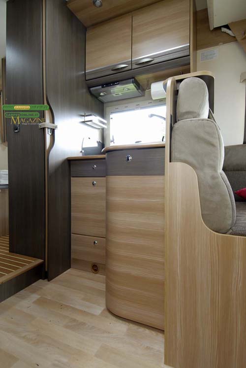 I van V53 3 V56 sono disponibili con due diverse ambientazioni di mobili a scelta, senza alcun supplemento di prezzo (Pino Varese e Ciliegio), ma la novità più rilevante riguarda il V53 con matrimoniale trasversale in coda ora divisibile in modo da ottenere un garage posteriore.