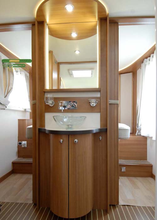 Confermati i cinque veicoli della serie di integrali 9DF con doppio pavimento tecnico, ora però disponibili con le due diverse ambientazioni interne (Ciliegio e Pino Varese) senza alcun supplemento di prezzo. I modelli sono: 903DF e 983DF, con matrimoniale trasversale su garage; 946DF, con matrimoniale alla francese; 966DF, a letti gemelli; 991DF, con letto centrale nautico.