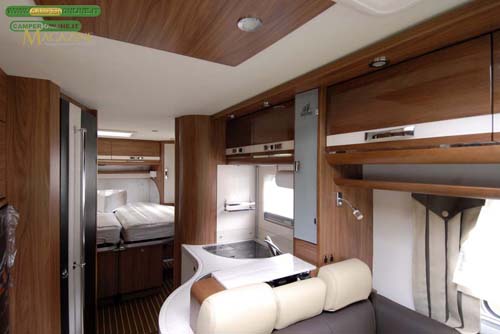 Il top di gamma è come sempre rappresentato dai veicoli della serie 9M e 9MH allestiti su meccanica Mercedes, gli ultimi di peso superiore ai 3500 Kg. L’intelaiatura di rinforzo della scocca è ora realizzato in alluminio, mentre il nuovo arredamento Majesty è frutto del lavoro di un designer di yacht di lusso e il risultato è un ambiente estremamente raffinato ed esclusivo. Il modello 990MHV, disponibile anche nella versione Design Edition, beneficia del letto a penisola Papillon che, grazie ad un interessante sistema di apertura a V, consente la trasformazione in letti singoli. Da segnalare che le meccaniche Mercedes impiegate soddisfano lo standard EEV, che di fatto anticipa la normativa Euro 6.