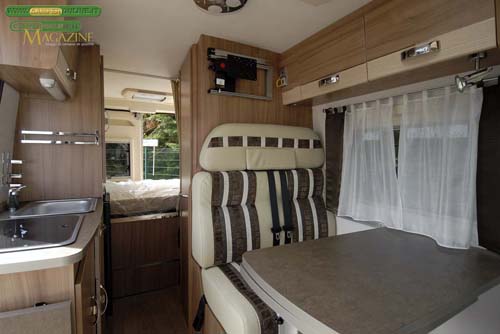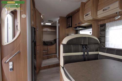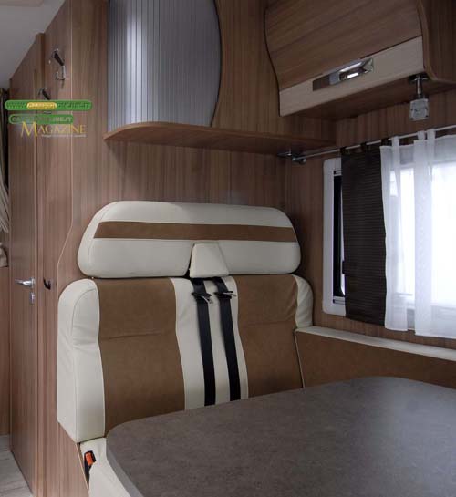 Tra i motorhome della gamma Référence fa il suo debutto il modello G690 LGR, un veicolo contenuto entro i 7 metri con matrimoniale trasversale su garage, toilette e doccia indipendenti, cucina a L e living formato da dinette angolare con divanetto contrapposto.