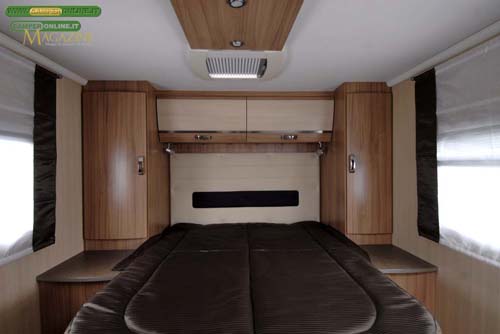 Il motorhome G691LGE con matrimoniale trasversale su garage è ora con toilette e doccia in vani separati e autonomi.