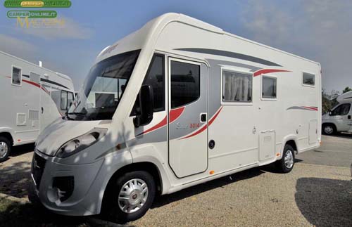 Nuovo è anche il modello 69, semintegrale con letto a discesa sul living (da 140 cm di larghezza e che lascia libera la porta di accesso). Lungo 749 cm, adotta il letto a penisola in coda con toilette e doccia in vani indipendenti, cucina angolare con maxi-frigorifero, living composto da semidinette e panchetta laterale. Dello stesso modello è disponibile la versione EB (Easy Bed) con matrimoniale posteriore regolabile in altezza.