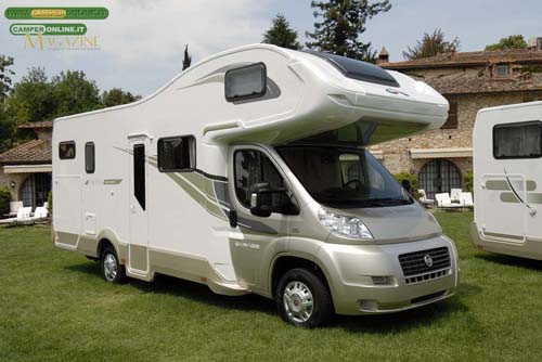 Il modello Elite P è anch’esso un semintegrale con letto nautico, toilette e doccia in locali separati e dinette angolare con panchetta laterale. Lungo 743 cm è omologato per quattro persone e dispone di altrettanti posti letto.