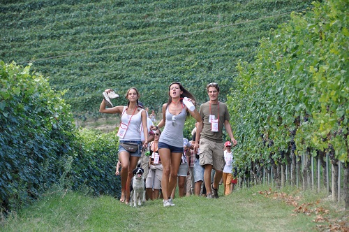 “cammina nel verde, cammina nel vino”, formula che lascia trasparire il proposito dell’iniziativa, tesa alla valorizzazione conoscitiva dei vini e delle specialità gastronomiche tipiche della zona, che si potranno degustare direttamente nei luoghi di produzione, tra le celebri vigne di dolcetto, barbera e nebbiolo da Barolo.