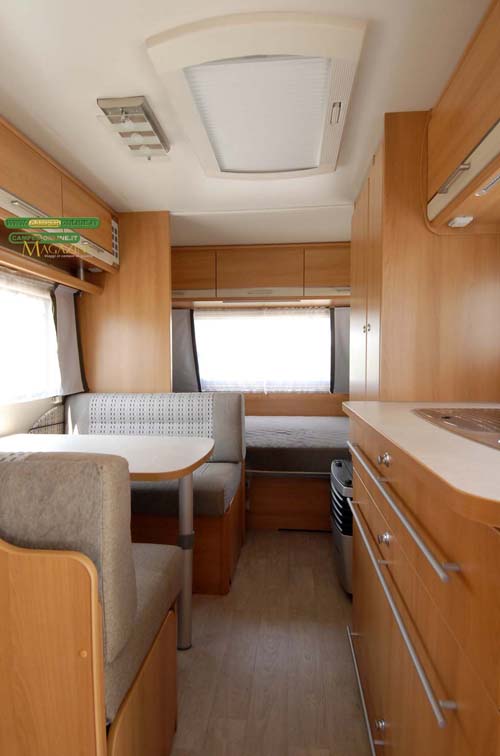 Tra i nuovi modelli si mette in risalto la 372 con dinette a divani longitudinali contrapposti, trasformabili in letti singoli o in grande matrimoniale. Cucina e toilette sono in coda.