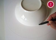 Prima di tutto prendiamo il cartoncino e posizioniamo la scodella grande a testa in giù e disegniamo la prima circonferenza.