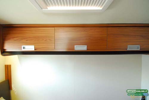 La lunghezza del letto basculante non è certo esuberante, ma l’allestimento è comunque adeguato. Molto meglio il matrimoniale posteriore, che in aggiunta può fruire della regolazione in altezza.
