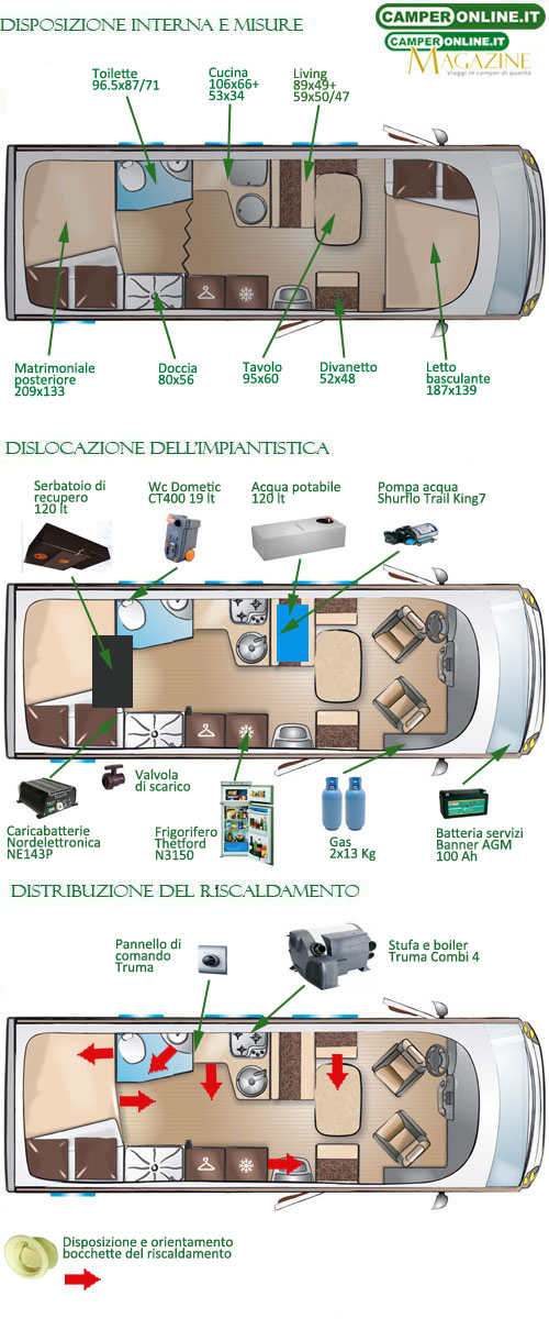 Il serbatoio di recupero, con relativa tubatura e valvola di scarico, non dispone di serie di riscaldamento e coibentazione, pertanto chi prevede di utilizzare il veicolo in presenza di temperature rigide è bene faccia ricorso all’apposito pacchetto di accessori.