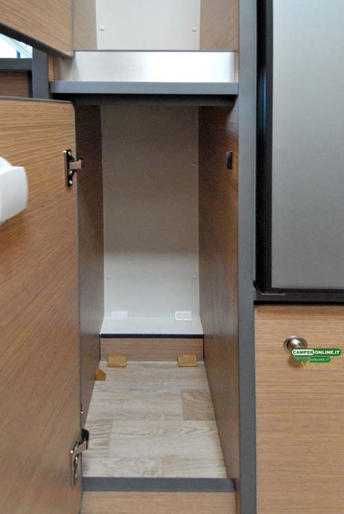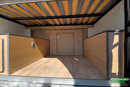 È allineata con le dimensioni e la vocazione del veicolo. Non si può pensare di averi i volumi di un maxi motorhome, ma la coppia sportiva troverà la giusta sistemazione a ciò che gli serve realmente.