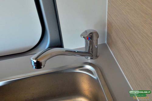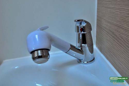 L’acqua viene così distribuita alle varie utenze di bordo per essere erogata tramite miscelatori monocomando in metallo cromato.