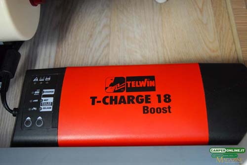 Batteria supplementare 100 Ah. Caricabatterie, trasformatore Telwin, pannello di comando CBE semplice e intuitivo, illuminazione interna a led, sufficiente la disponibilità di prese elettriche.