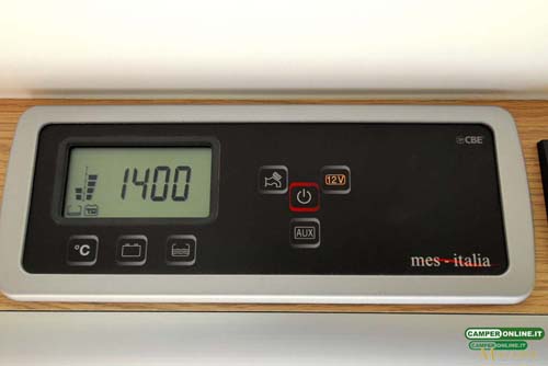 Il pannello di comando CBE  PC200 con schermo Lcd e pulsanti soft touch è installato superiormente al portellone laterale e consente il controllo della tensione delle batterie, del livello dei serbatoi dell’acqua potabile e di recupero, della temperatura interna. Sono inoltre presenti l’interruttore generale e quelli che consentono di azionare la pompa dell’acqua e del boiler (Aux).