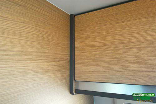 Alcune finiture all’interno potrebbero essere migliorate, pensiamo soprattutto alla bordatura delle antine e delle paratie dei mobili, ma anche al loro sistema di fissaggio. Anche all’esterno i pochi complementi dell’allestimento (prese di corrente e dell’acqua, sportello della cassetta del Wc) meriterebbero di essere verniciati in tinta con la carrozzeria, con indubbi vantaggi per l’eleganza del veicolo, peraltro buona.
