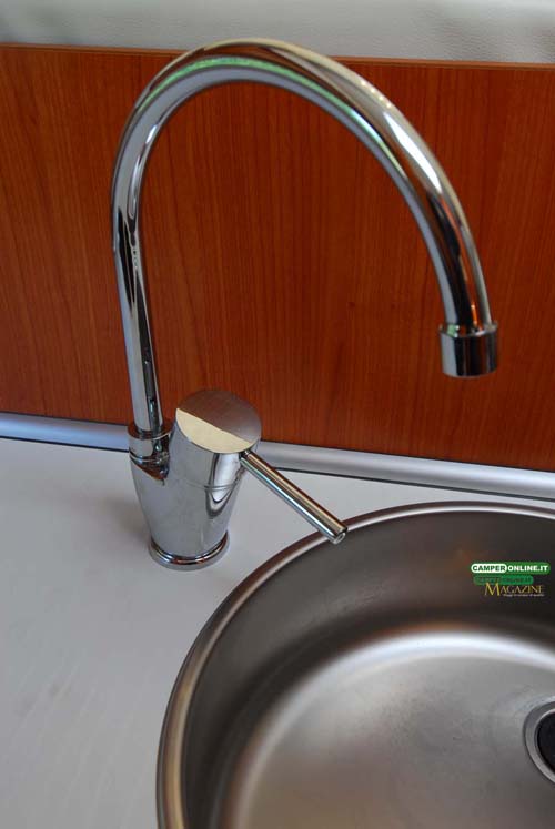 Serbatoio acqua potabile interno, pompa acqua di qualità e miscelatori monocomando in metallo cromato. Autonomia nella media, buon bilanciamento tra capacità di carico e recupero. Peccato che coibentazione e riscaldamento del serbatoio di recupero siano solo optional.