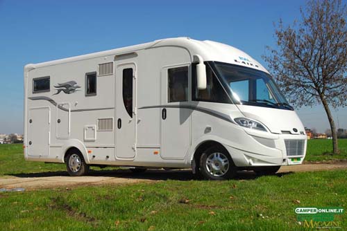 | Prezzo esemplare provato | Comprensivo di: Motorizzazione 150 Cv (Euro 1.228); Pacchetto Lusso (climatizzatore motore, alternatore maggiorato, doppio airbag, inserti effetto radica cruscotto, specchi retrovisori a doppia ottica verniciati in tinta, grafiche esterne Elegance, pensili con illuminazione indiretta Full Moon System, impianto illuminotecnico plurivie, cruise control, cofano motore con apertura servoassistita, antifurto volumetrico e perimetrale…) (Euro 4.110); Matrimoniale posteriore regolabile in altezza elettricamente (Euro 1.534); Porta cabina lato destro (Euro 1.440).Totale veicolo in CamperOnTest Euro 88.172 |
