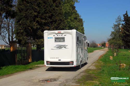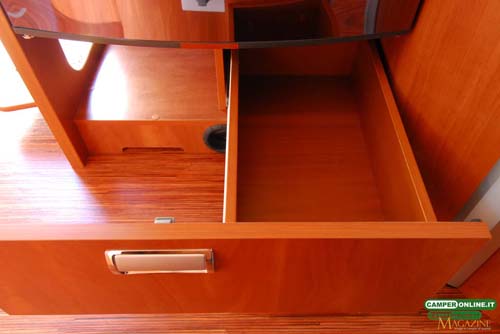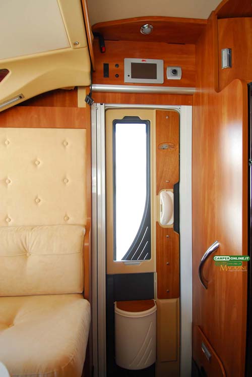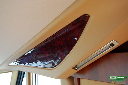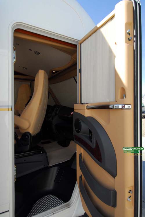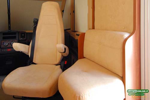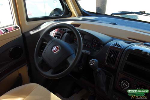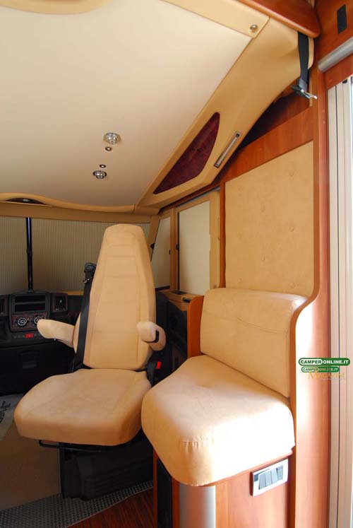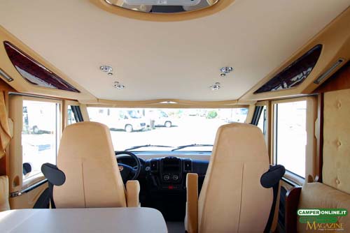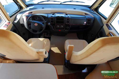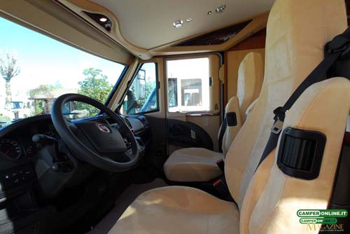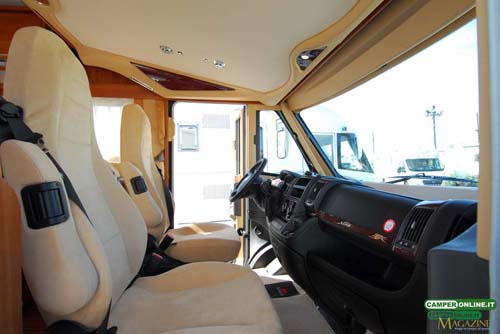 Il comportamento su strada è sincero e trasmette sicurezza al conducente, in virtù delle doti del telaio Al-Ko, inoltre, l’ottima visibilità, garantita dall’ampia vetratura anteriore e dagli ottimi specchietti retrovisori, assicura facilità di guida e viene ulteriormente accresciuta dalle buone doti di maneggevolezza e manovrabilità. Un valido aiuto, infine, viene dalle poltrone di guida Aguti dotate di numerose regolazioni in grado da assicurare a tutti la giusta posizione sia in viaggio che in sosta. L’integrazione tra la cabina di guida e la cellula abitativa è realizzata con cura, facendo ricorso a materiali di qualità, e il risultato è un ambiente di stampo automobilistico, con finiture adeguate alla classe del veicolo.