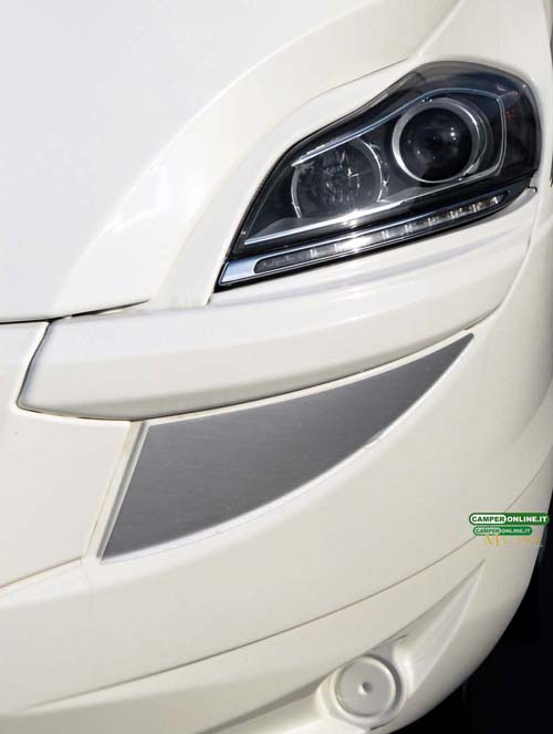 Uno inferiore, assemblato direttamente sulla carrozzeria originale della meccanica di base per offrire ampia robustezza e rigidità all’insieme, e uno superiore che, proprio come accade nel settore automobilistico, cura le forme esterne ma non è strutturale e, nella malaugurata eventualità di un impatto, facilita la riparazione consentendo interventi localizzati. In più, la particolare costruzione degli stampi consente la realizzazione di una intercapedine di aria a garanzia di una maggiore coibentazione del frontale.